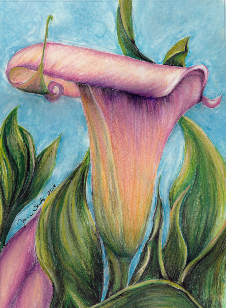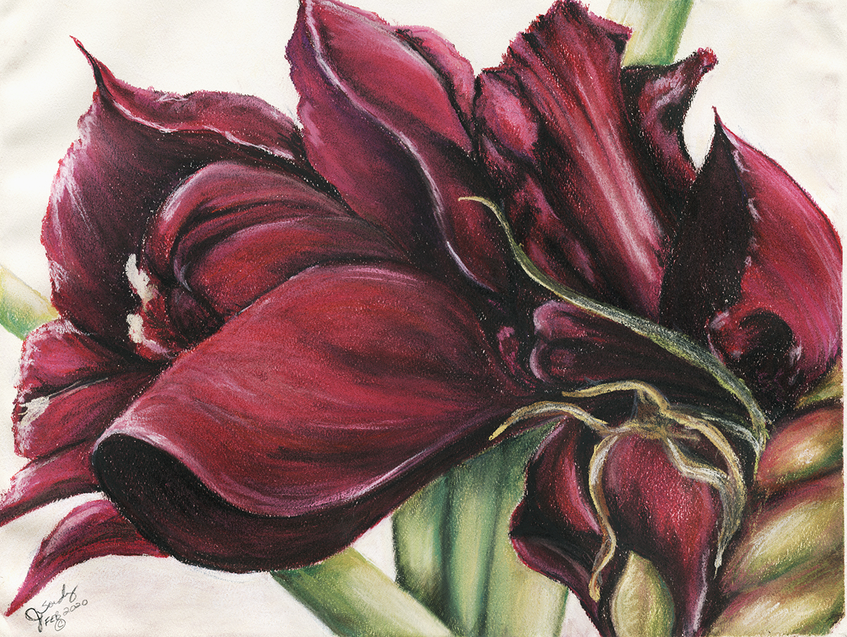 Verde Center is my interpretation of Stargazer Lily (Lillium orentalis) captured in mid-bloom state with center in bud stage. Delicate creamy and pink tones contrast with rich verde.